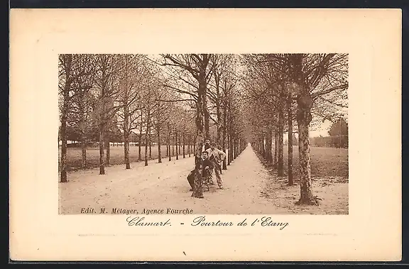 AK Clamart, Pourtour de l`Étang avec allée bordée d`arbres et promeneurs