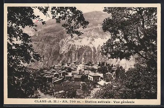 AK Clans, Station estivale à 700 m, vue générale du village et montagnes environnantes