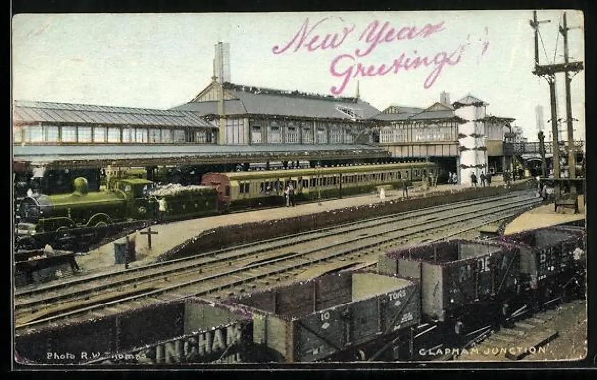 AK Clapham, Junction, View of the station with train, Bahnhof