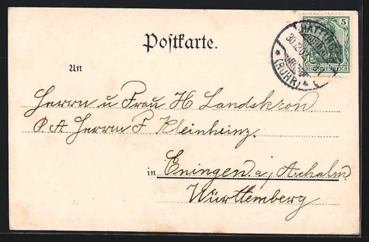 alte Ansichtskarte, gelaufen 1902, Eckknick unten re., guter Zustand