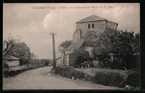 AK Claunay, L`Eglise vers le Monument aux Morts