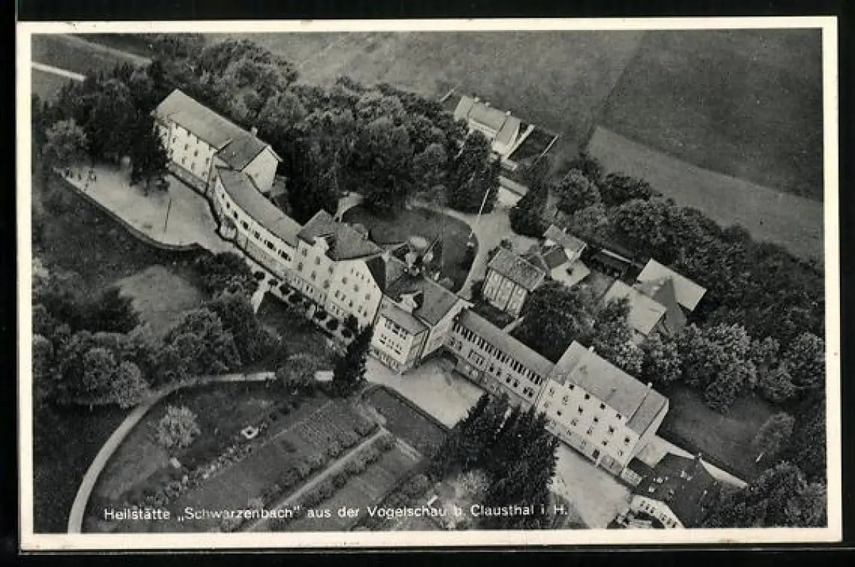 AK Clausthal i. H., Heilstätte Schwarzenbach aus der Vogelschau