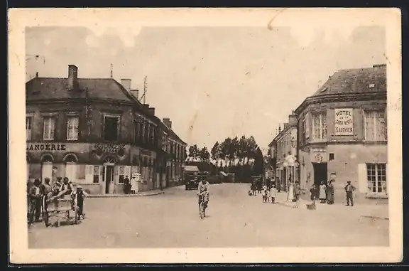 AK Cléré, Route de Château-la-Vallière avec boulangerie et hôtel animés