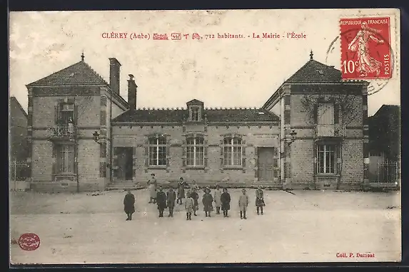 AK Clérey, La Mairie et l`École avec des enfants devant le bâtiment