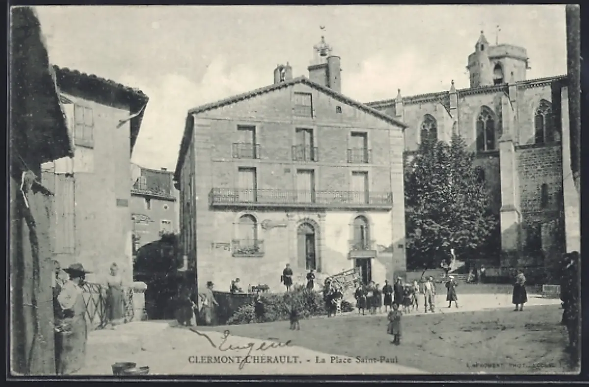 AK Clermont-l`Hérault, La Place Saint-Paul avec vue sur l`église et la vie quotidienne des habitants