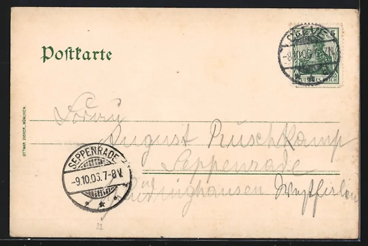 alte Ansichtskarte, gelaufen 1906, Eckknick oben li., Stempelspur, guter Zustand