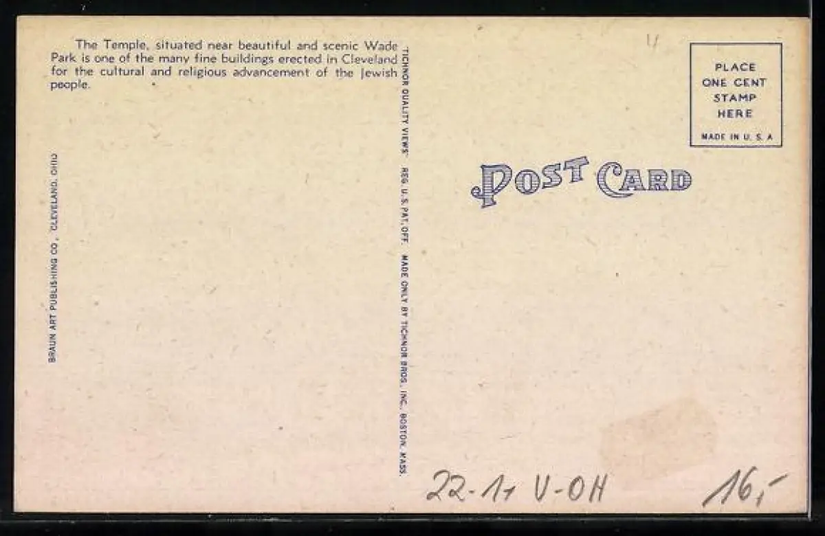 AK Cleveland, OH, The Temple, Ansel and 105 th Streets, Synagoge