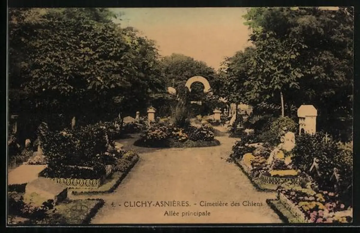 AK Clichy-Asnières, Cimetière des Chiens, Allée principale