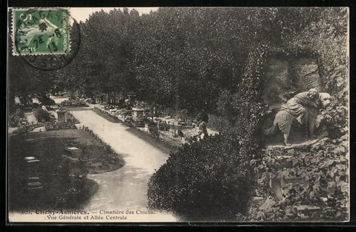 AK Clichy-Asnières, Cimetière des Chiens, Vue Générale et Allée Centrale, Friedhof