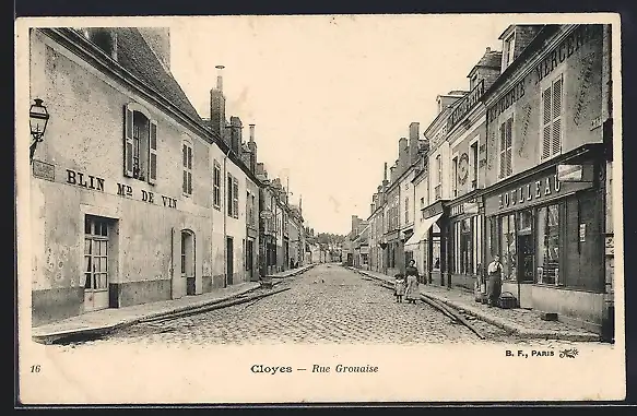 AK Cloyes, Rue Grouaise avec commerces et passants