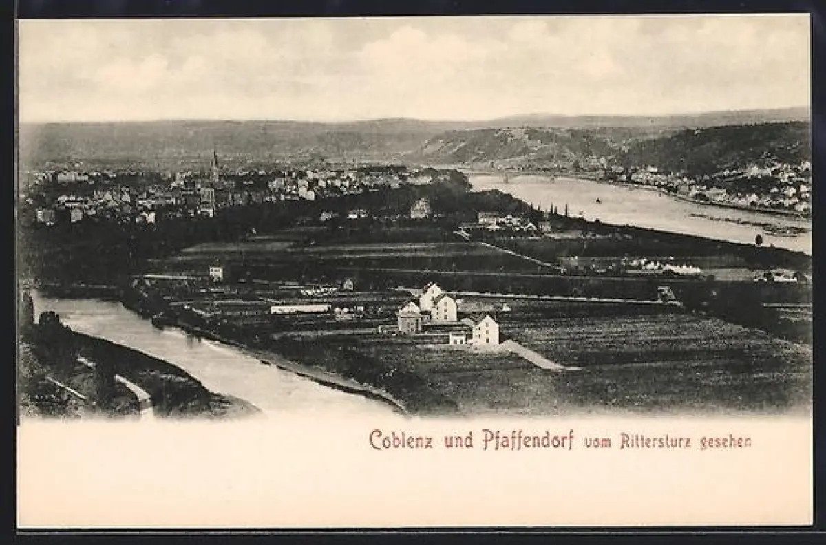 AK Coblenz, Coblenz u. Pfaffendorf, Ansicht vom Rittersturz