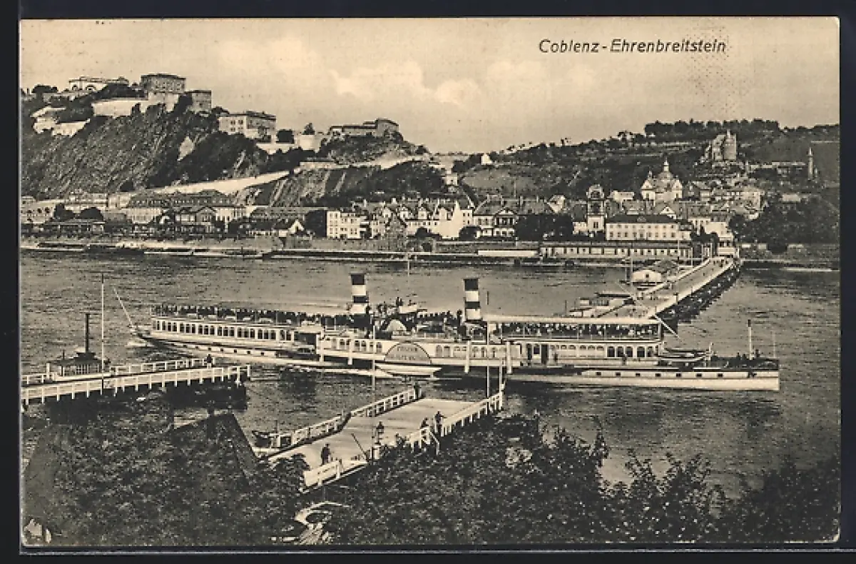 AK Coblenz-Ehrenbreitstein, Festung Ehrenbreitstein, Rheinufer, Dampfschiff