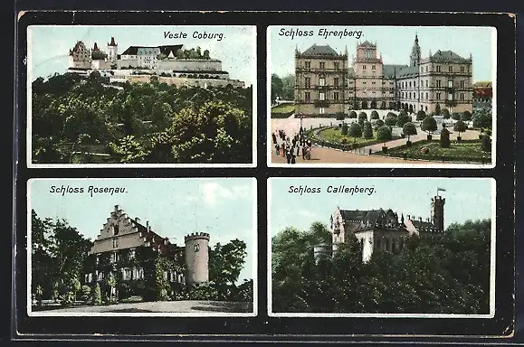 AK Coburg, Blick auf die Veste, Schlösser Ehrenberg, Rosenau und Callenberg