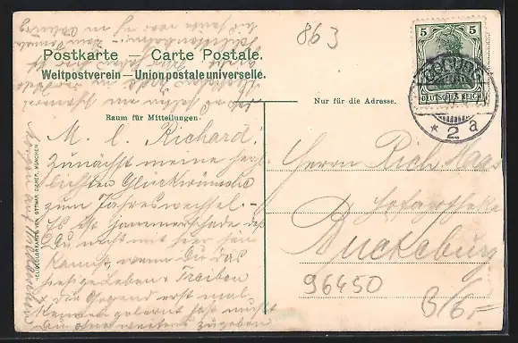 alte Ansichtskarte, gelaufen 1907, guter Zustand