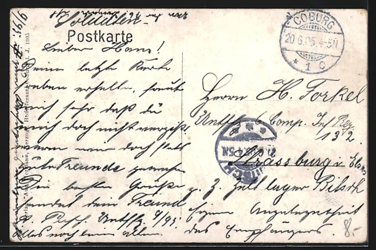 alte Ansichtskarte, gelaufen 1905, Stempelspur, guter Zustand
