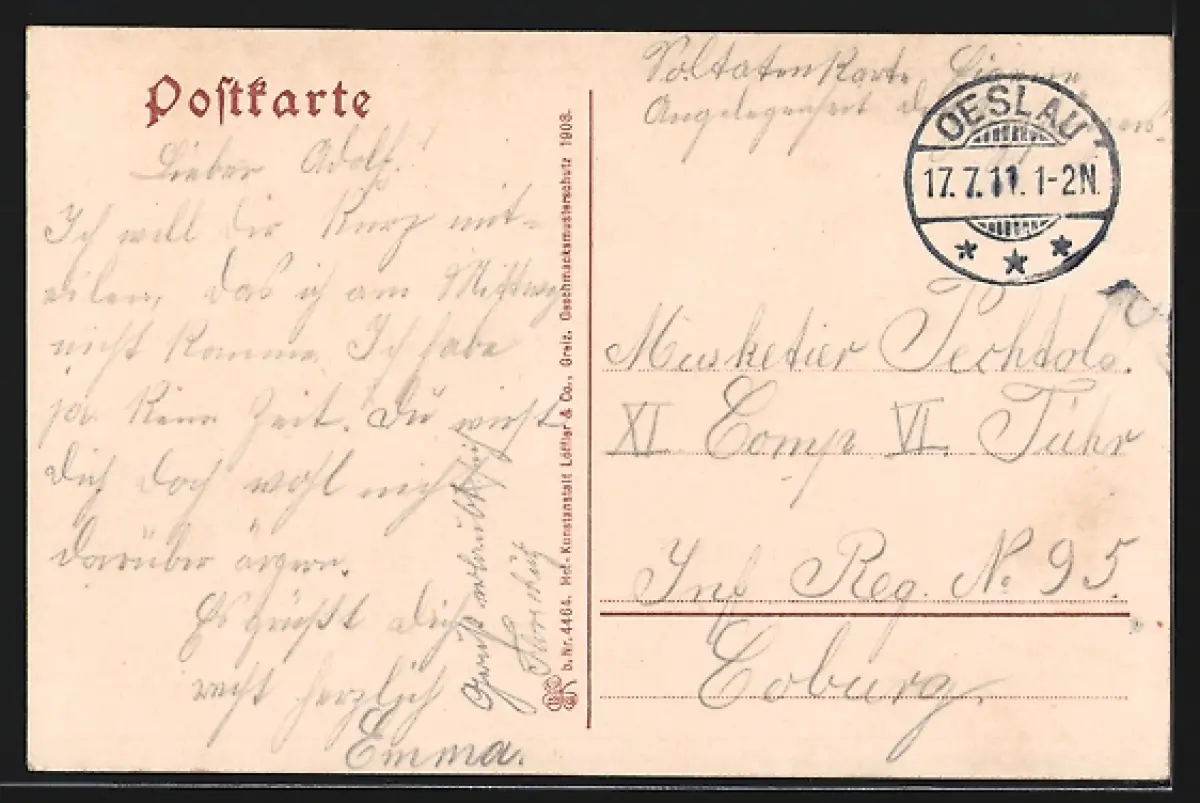 alte Ansichtskarte, gelaufen 1911, Stempelspur, guter Zustand