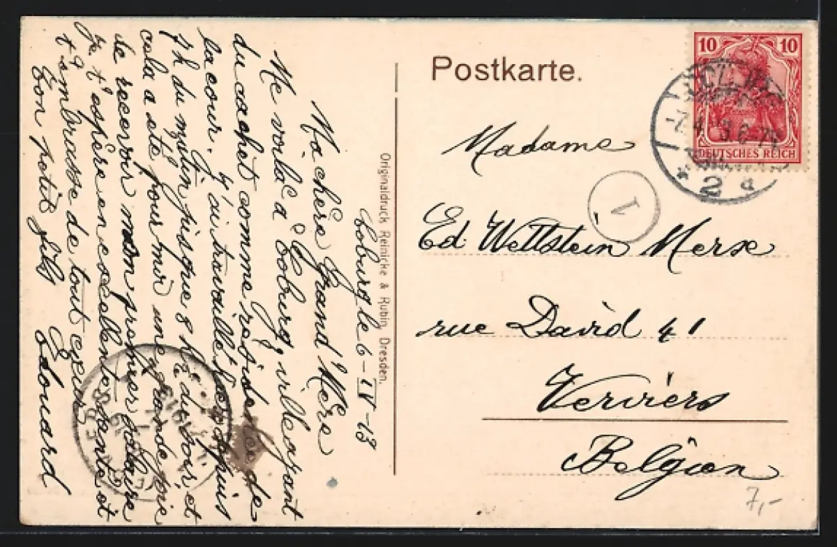 gelaufen 1913, Stempelspur, guter Zustand
