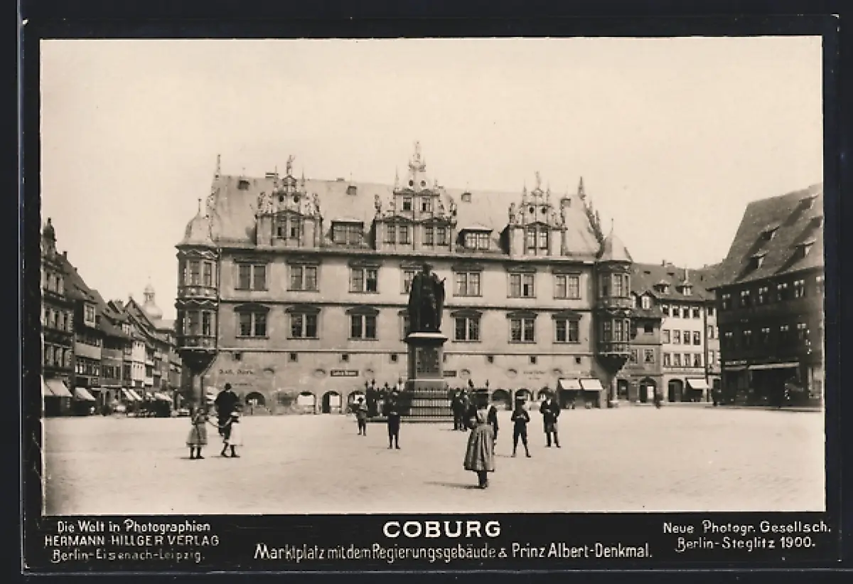 AK Coburg, Marktplatz mit Regierungsgebäude und Prinz Albert-Denkmal