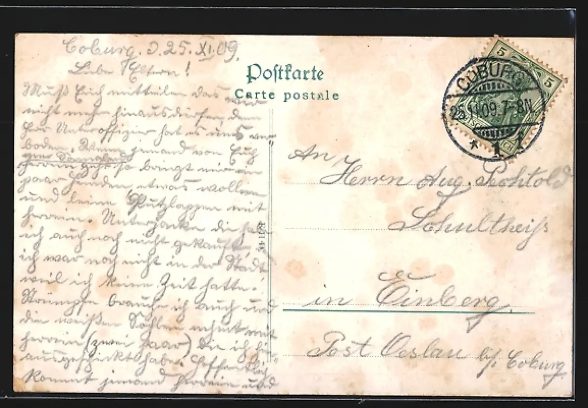 alte Ansichtskarte, gelaufen 1909, guter Zustand