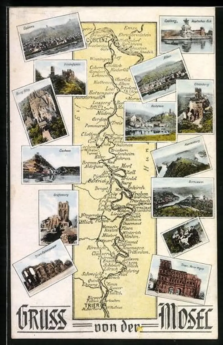 AK Cochem /Mosel, Karte der Mosel mit Coblenz, Trier, Zell, Bertrich