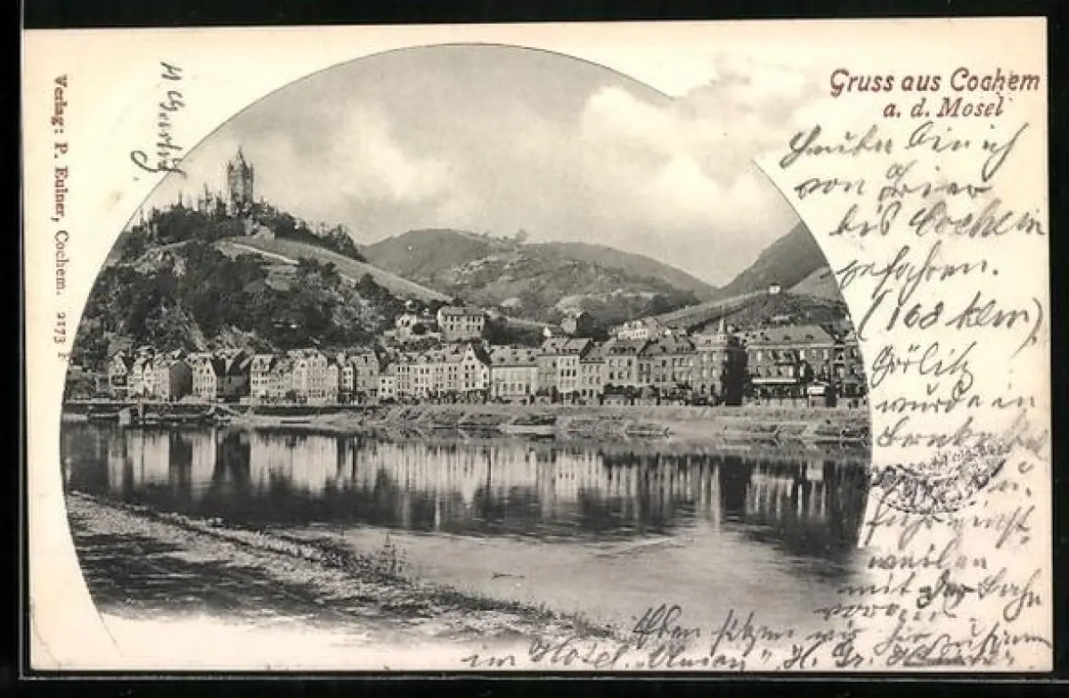 AK Cochem a. d. Mosel, Stadtansicht mit Reichsburg und Moselufer