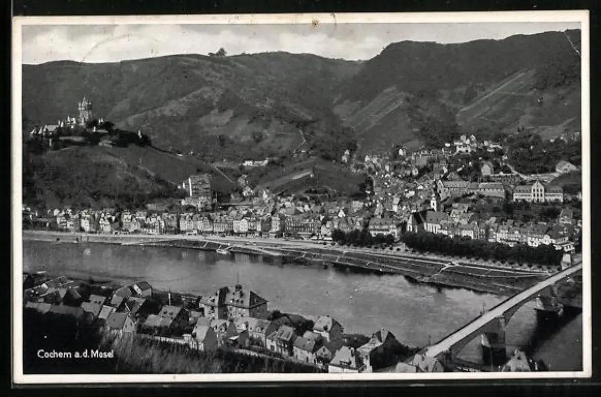AK Cochem a.d. Mosel, Gesamtansicht mit Moselbrücke