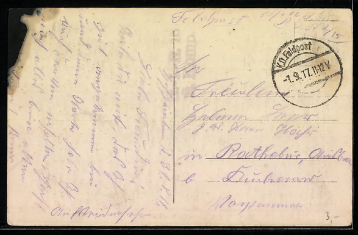 gelaufen 1917, Tintenfleck re. oben, guter Zustand