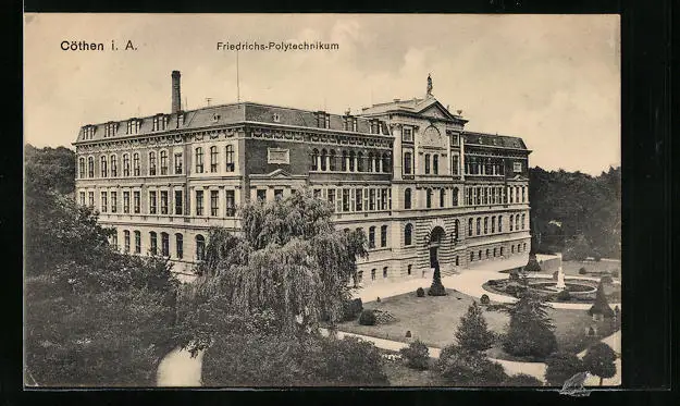 AK Cöthen i. A., Friedrichs-Polytechnikum mit Garten von oben gesehen
