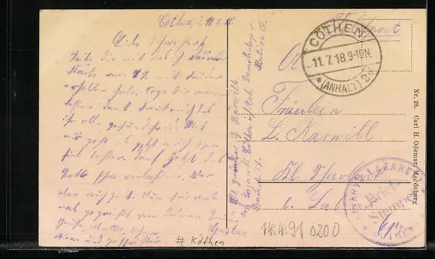 gelaufen als Feldpost 1918, guter Zustand