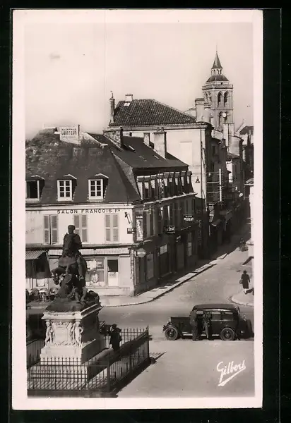 AK Cognac, Rue d`Angonleme et Clocher de l`Eglise St-Leger
