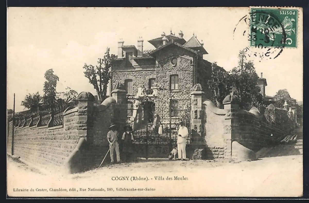 AK Cogny /Rhône, Villa des Meules avec personnages devant l`entrée