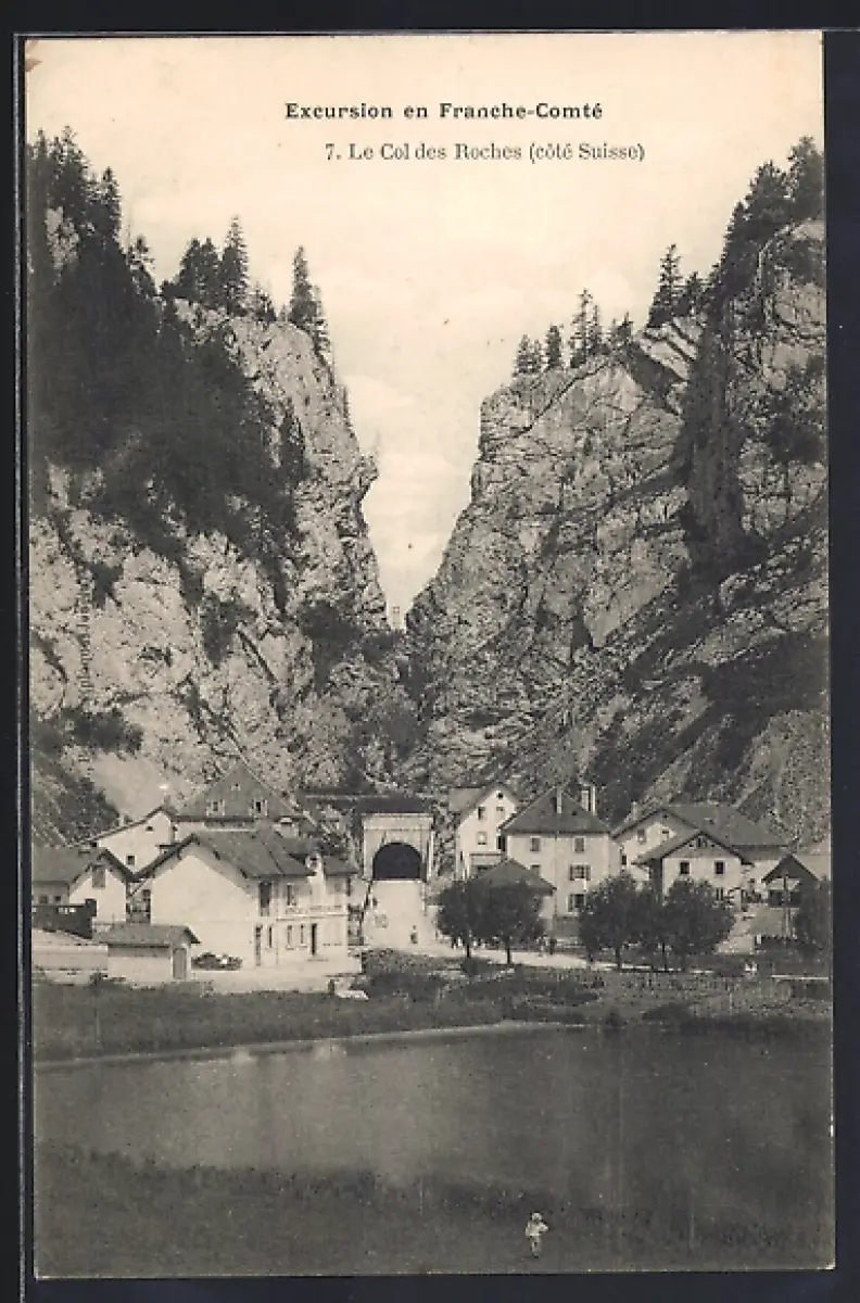 AK Col des Roches, Vue du côté suisse avec passage entre les falaises rocheuses