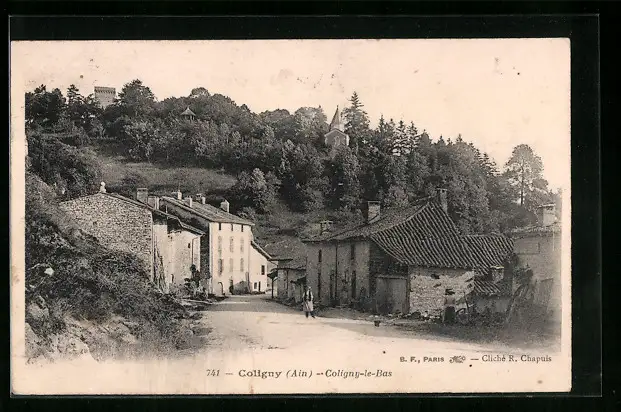 AK Coligny, Coligny-le-Bas, Blick hinauf zur kleinen Kapelle
