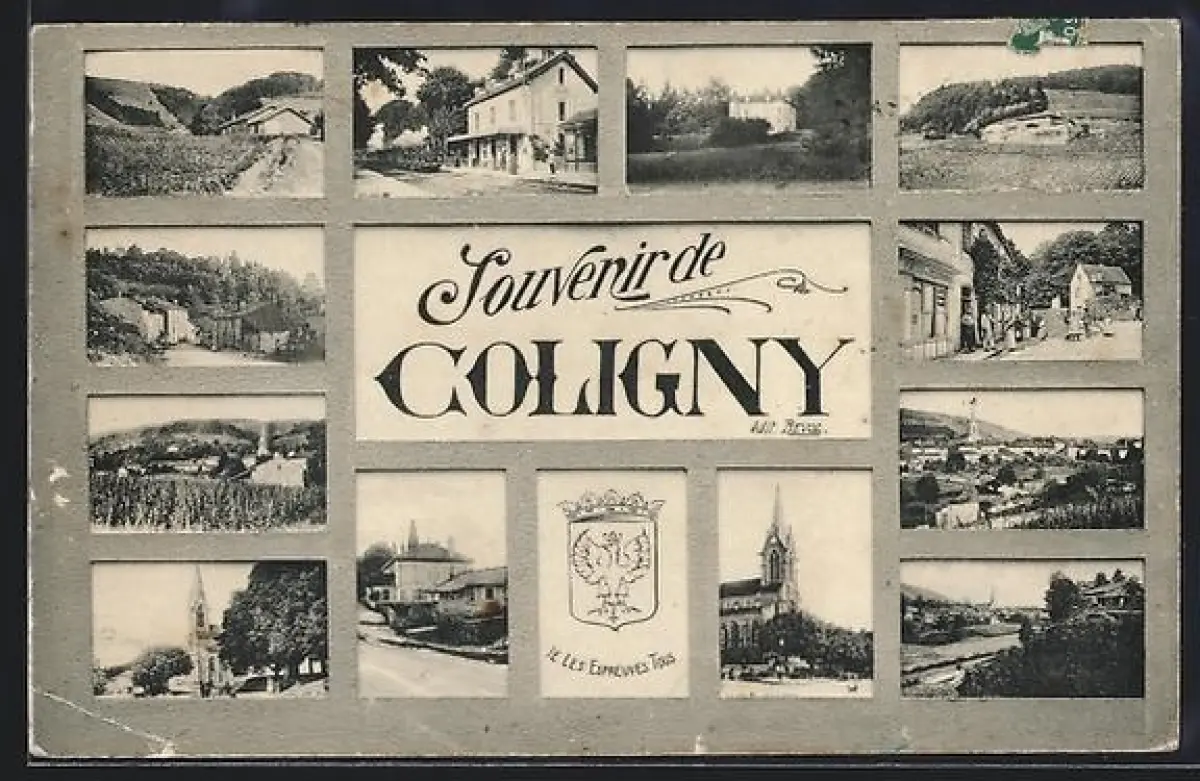 AK Coligny, Souvenir avec vues multiples de la ville et paysages environnants