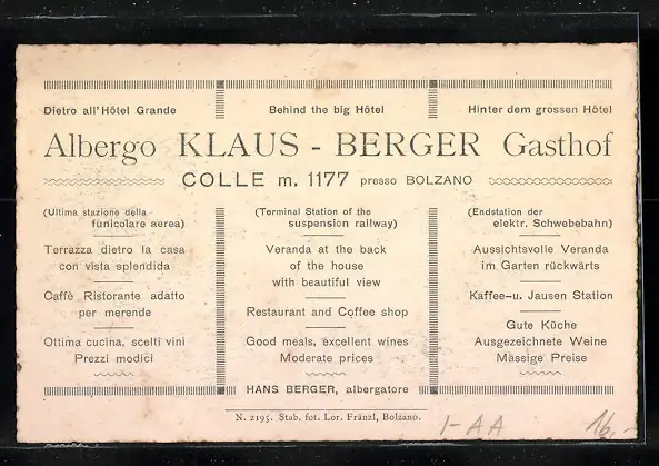 AK Colle b. Bolzano, Albergo Klaus-Berger