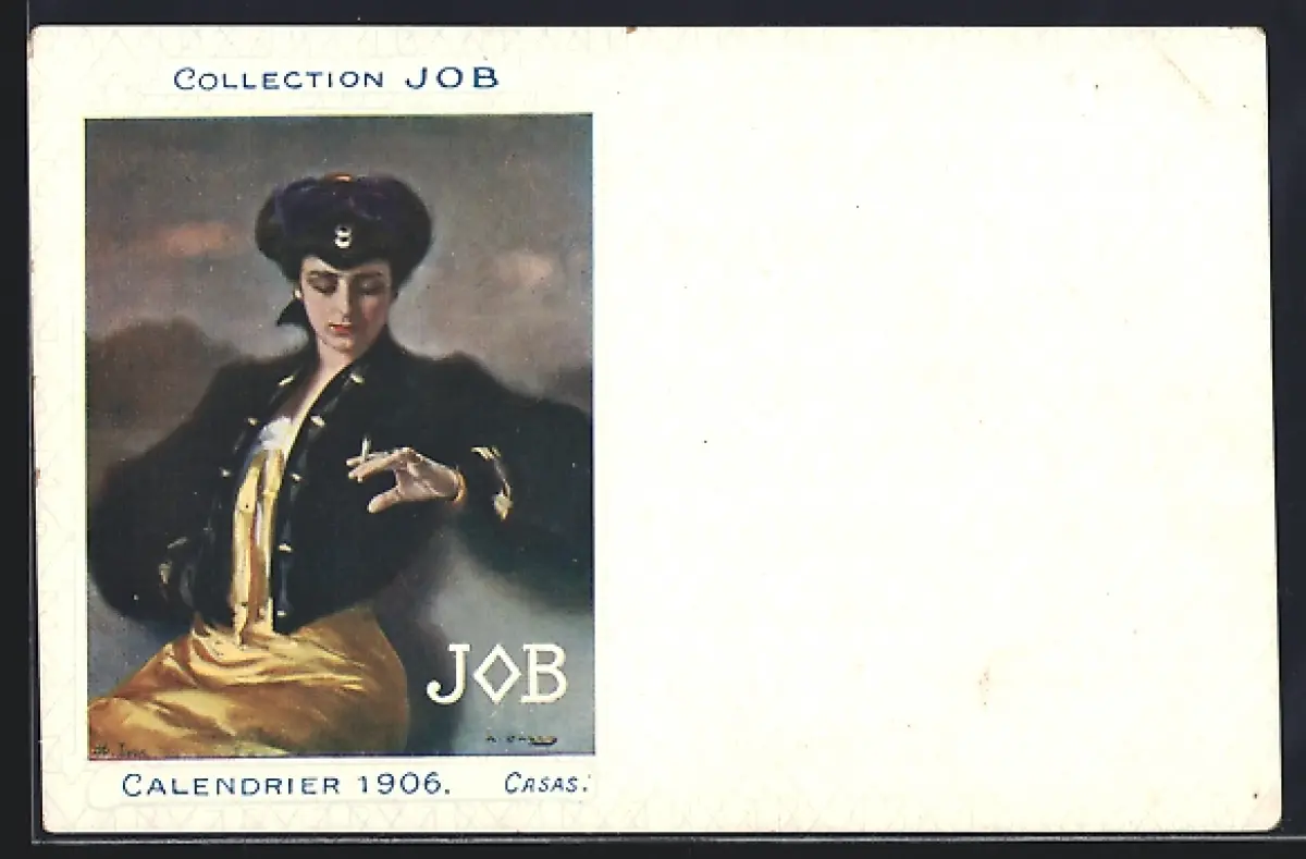 AK Collection JOB, Calendrier 1906, Dunkelhaarige Frau mit Zigarette, Jugendstil