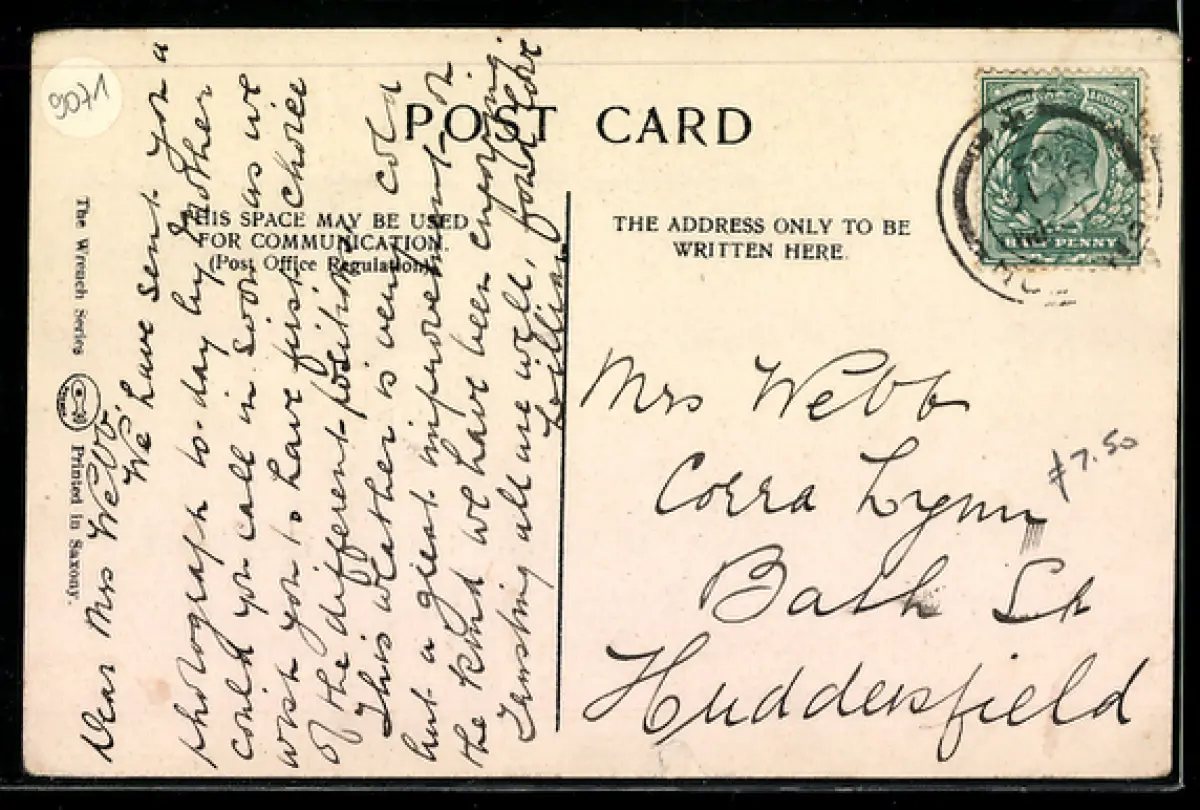 alte Ansichtskarte, gelaufen, rückseitig Klebe- und Papierreste, Ecken bestoßen, guter Zustand