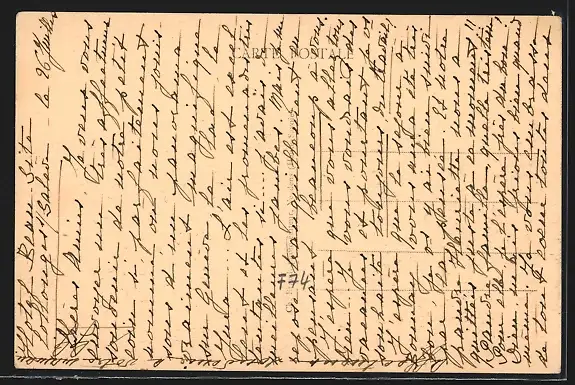 Personenbezogene Daten auf der Rückseite der Karte wurden durch blauen Textmarker unkenntlich gemacht. Die blauen Stellen sind auf die Vorderseite durchgeweicht und wirken sich negativ auf das Postkartenfoto aus