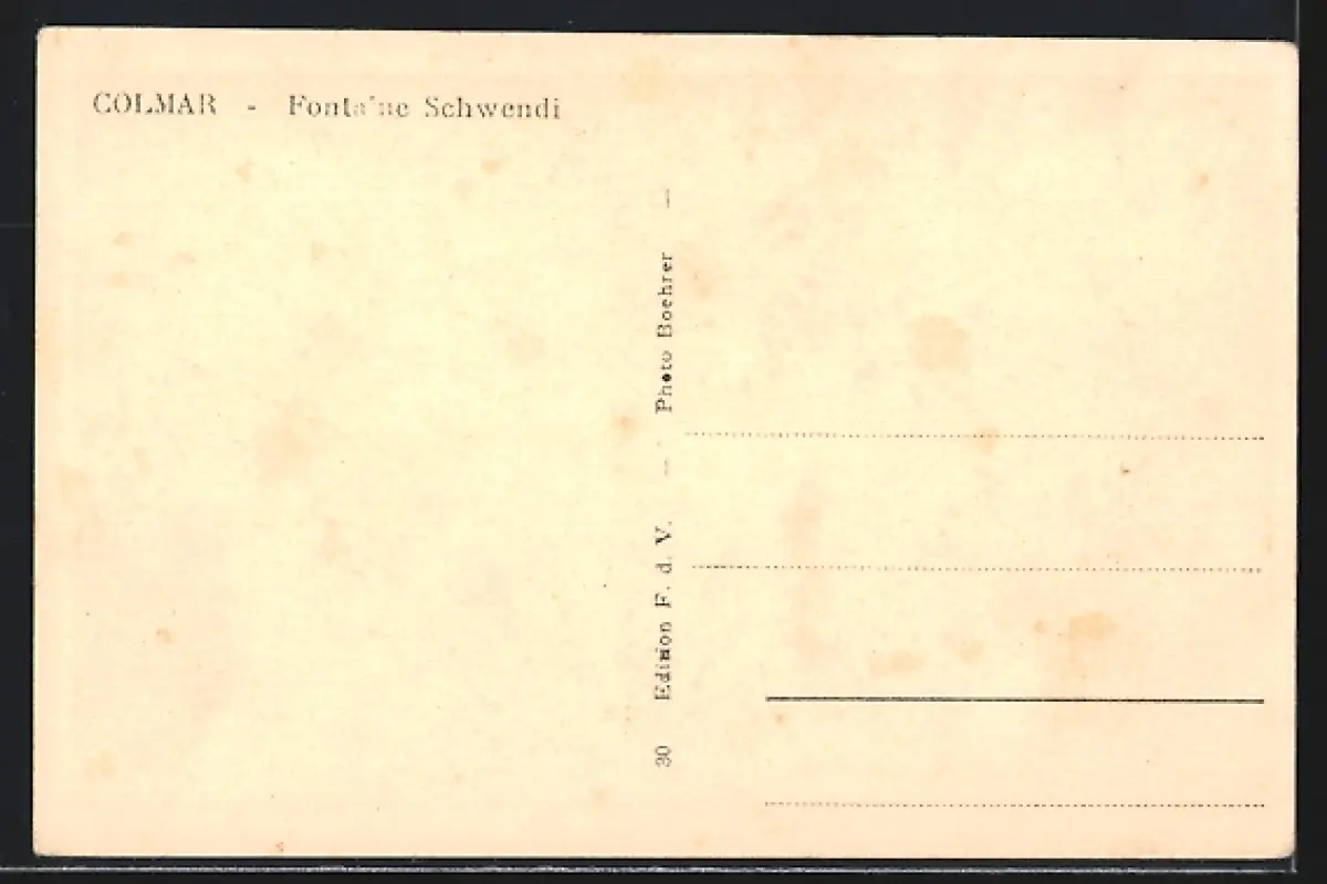 AK Colmar, Fontaine Schwendi et arcade en pierre