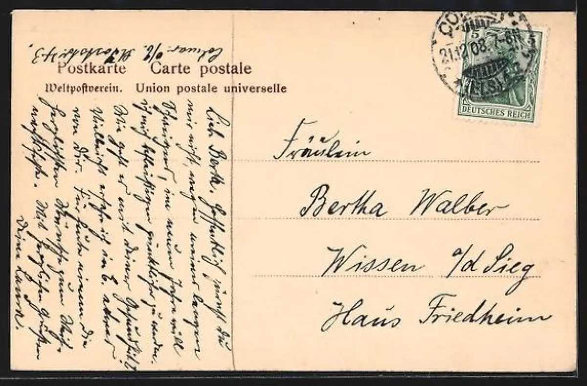 alte Ansichtskarte, gelaufen 1908, guter Zustand