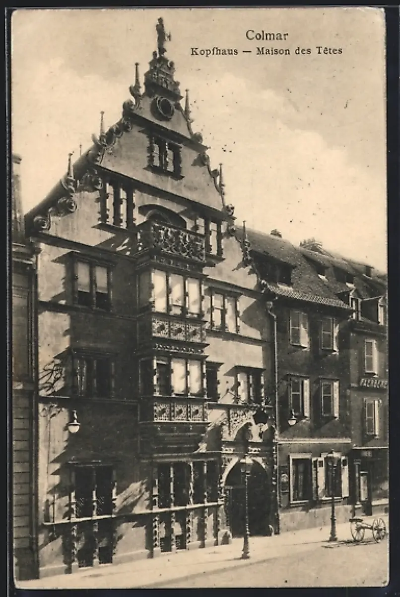 AK Colmar, Maison des Têtes avec sa facade richement décorée