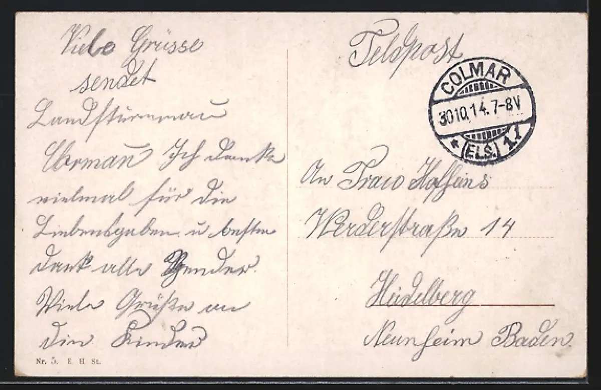 alte Ansichtskarte, gelaufen 1914, guter Zustand