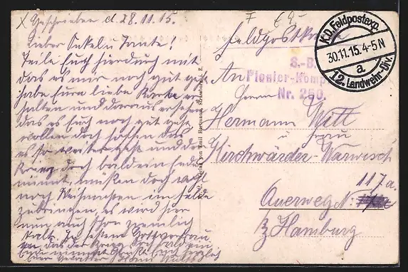 alte Ansichtskarte, gelaufen 1915, minimaler Einriss re. oben, Ecken bestoßen, guter Zustand