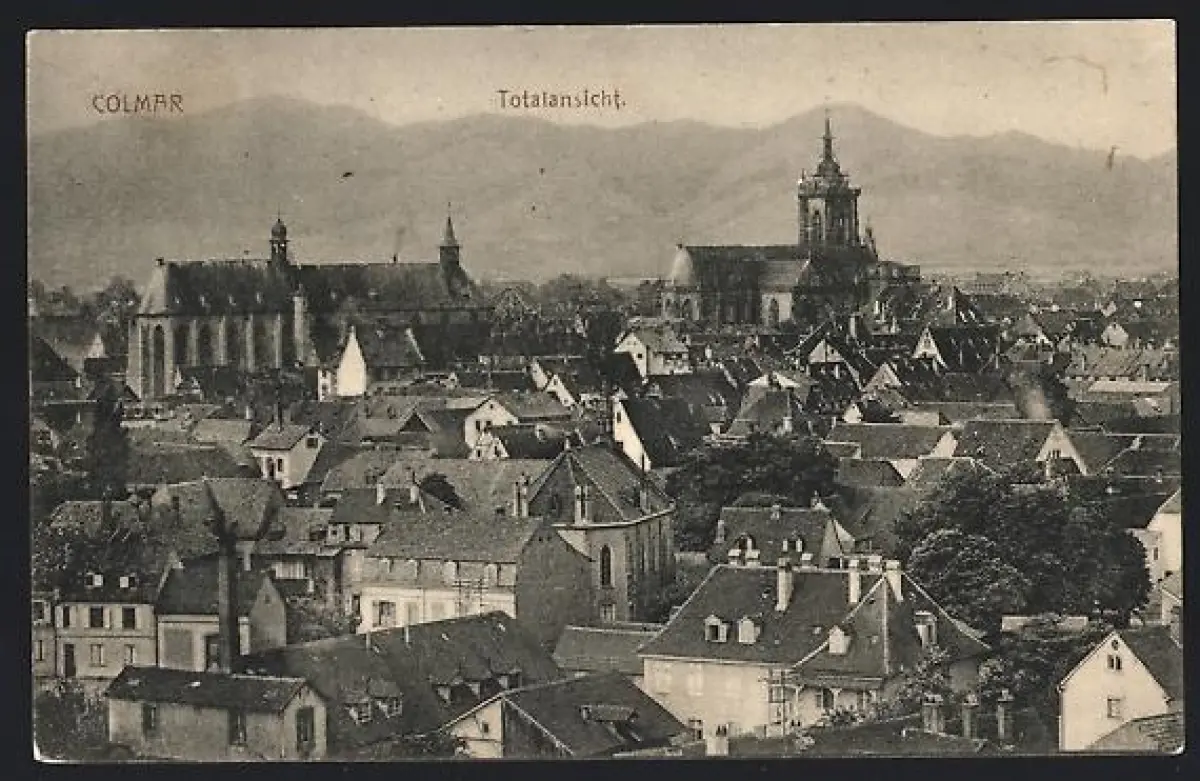 AK Colmar, Vue d`ensemble de la ville avec les montagnes en arrière-plan