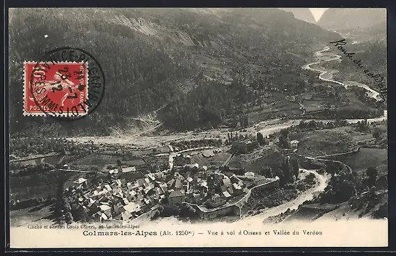 AK Colmars-les-Alpes, Vue a vol d` Oisseau et Vallee du Verdon