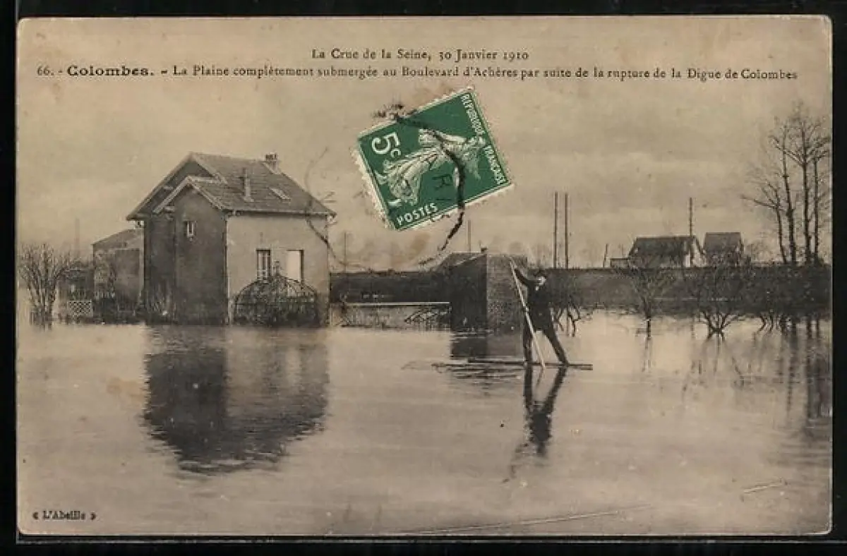 AK Colombes, La Plaine submergée au Boulevard d`Achères, crue de la Seine 1910