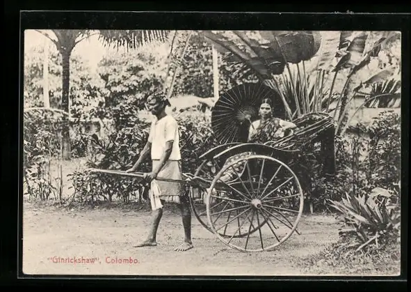 AK Colombo, Rikscha mit weiblichem Fahrgast