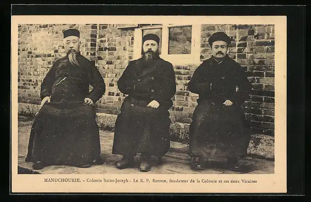 AK Colonie Saint-Joseph /Mandchourie, Le R. P. Roubin, fondateur de la Colonie et ses deux Vicaires