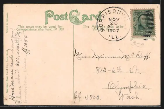 alte Ansichtskarte, gelaufen 1907, Abriebspur li. oben, guter Zustand