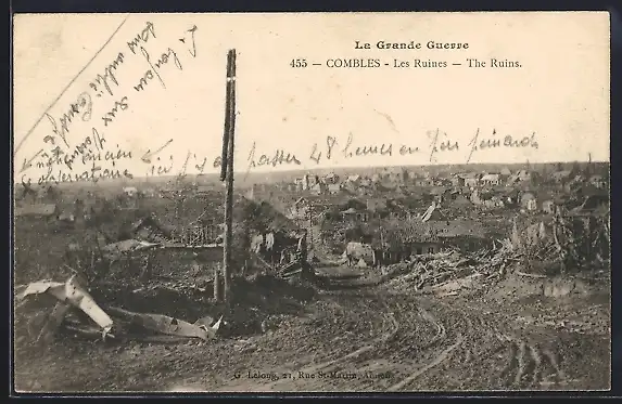 AK Combles, Les Ruines après la Grande Guerre